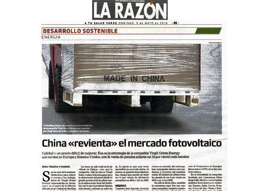 IT Communicacion handled the communications strategy and media relations of Yingli Solar for a period of two years. Yingli Solar is one of the leading manufacturers of vertically integrated photovoltaic products. From the beginning of the collaboration, IT Communicacion developed the communication planning focused in Spain and supported the marketing department of the company. In addition to media relations, the agency also coordinated the participation of Yingli Solar at several fairs and meetings within the sector, as well as organizing events both press and customers.
